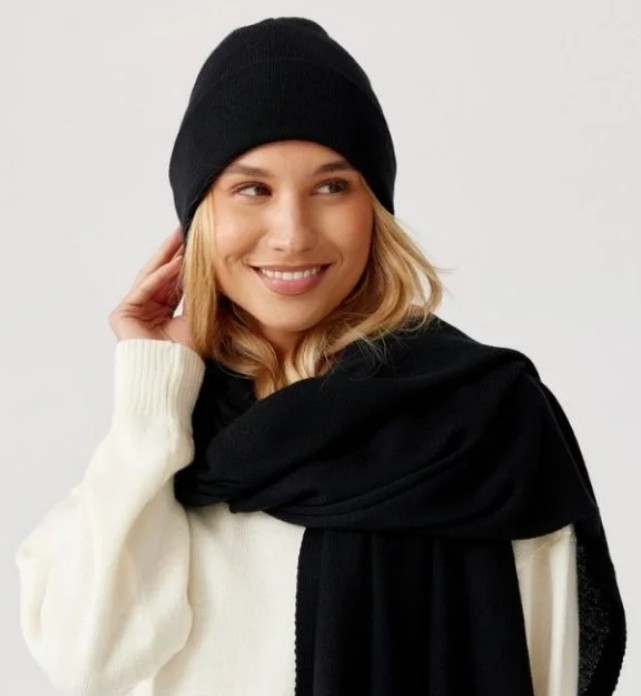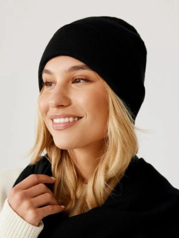 Czapka Black w klasycznym czarnym kolorze to modny dodatek, który subtelnie dopełni każdą stylizację. Elastyczna dzianina idealnie dopasowuje się do kształtu głowy, zapewniając komfort i pewne trzymanie – bez ucisku i bez efektu „elektryzowania”.